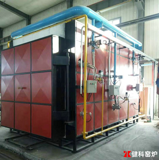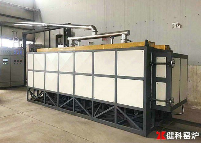 梭式窯除具有一般倒焰窯操作靈活性大,能滿足多品種生產(chǎn)等優(yōu)點外,其裝窯、出窯和制品的部分冷卻可以在窯外進行,既改善了勞動條件,又可以縮短窯的周轉(zhuǎn)時間。但由于間歇燒成,窯的蓄熱損失和散熱損失大,煙氣溫度高,熱耗量較高。新型節(jié)能型梭式窯改進了窯體砌筑結(jié)構(gòu),增設(shè)了廢氣余熱利用裝置,使這一缺點很大改善。